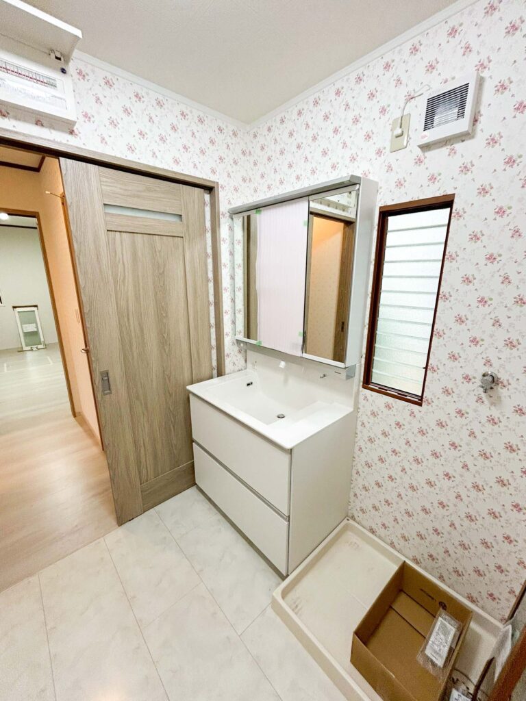 洗面化粧台はPanasonicのウツクシーズ、浴室はPanasonicのオフローラを設置。