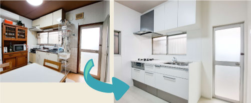 A. 最初に見たとき、カタログで見ていた以上の仕上がりだと思いました。掃除もしやすいし、収納力も抜群です。とっても使いやすい。物を出しっぱなしにすることが嫌なので、全部しまうことができることはノンストレスです。キッチンに入るたびに「リフォームして良かった」と思っています。